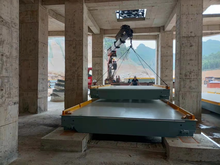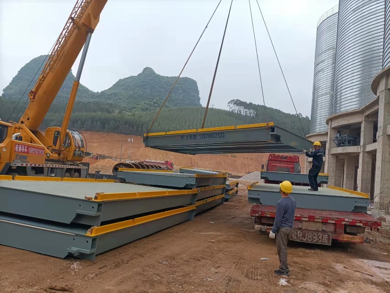 柳州特力汽車衡采用模塊化軸銷搭接,以便秤臺(tái)之間可以搭接互換,便于秤體現(xiàn)場安裝。限位采用縱向與橫向結(jié)合的方式,保證秤體縱向、橫向不移位。